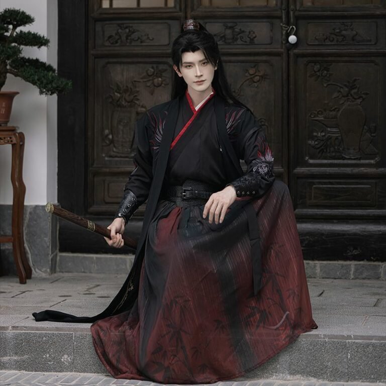 Martial Arts Embroidered Black And Red Costume Cosplay Costume