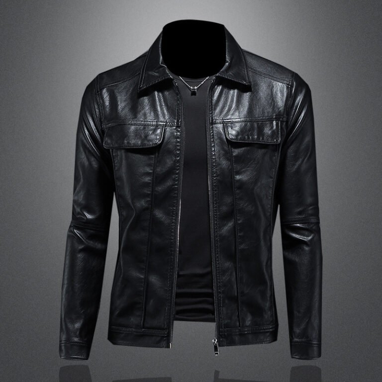 Men’s Lapel Motorcycle Leather Coat