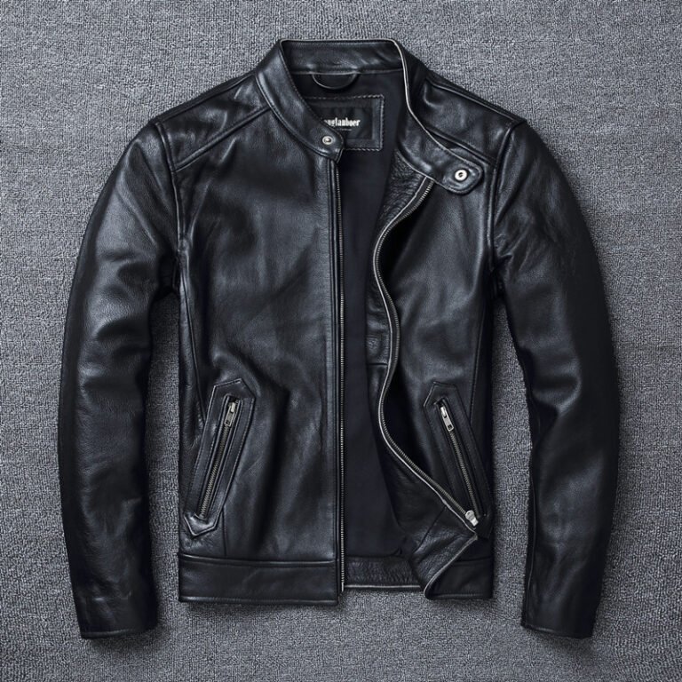 Men’s Stand Collar Retro First Layer Cowhide Coat Jacket