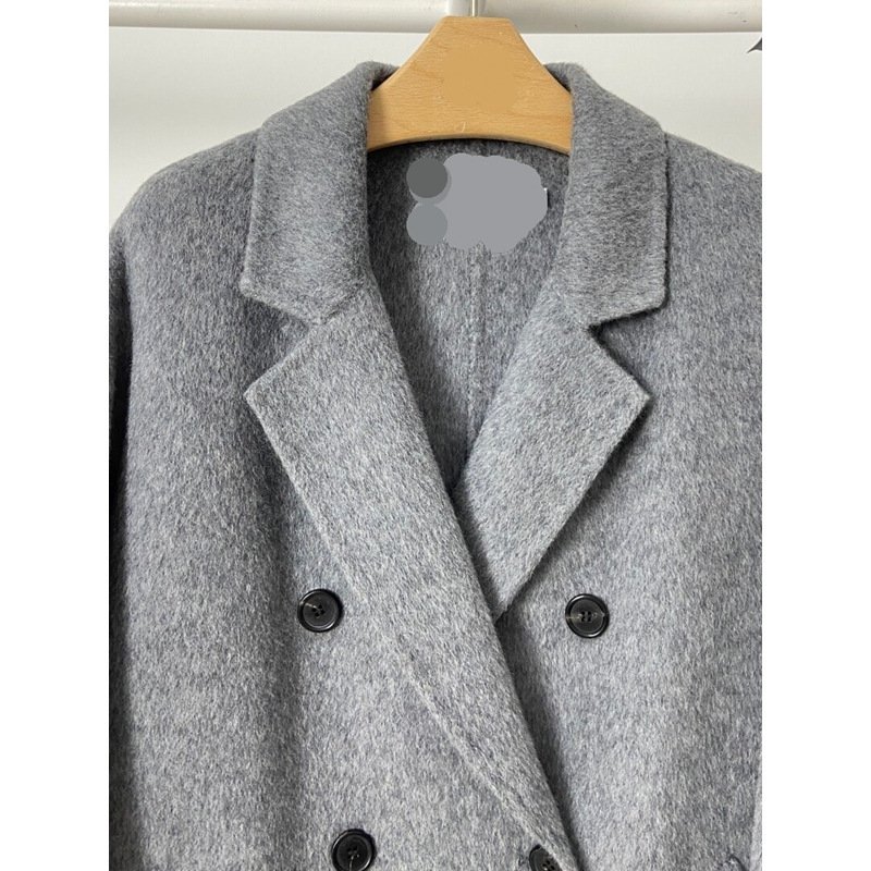 Be the first to review “Gray Double Breasted Slimming Woolen Coat Outerwear”