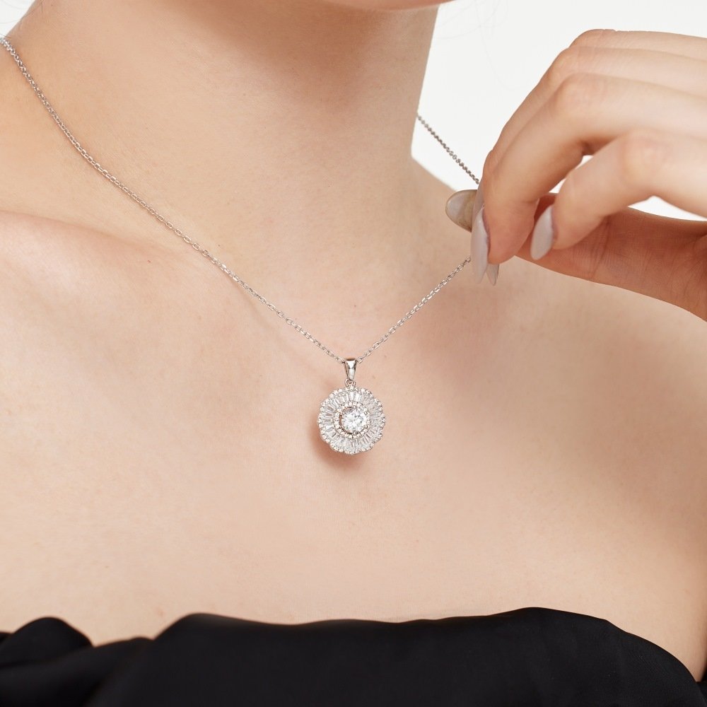 Popular S925 Sterling Silver Necklace Women’s Lace Full Zircon Inlaid