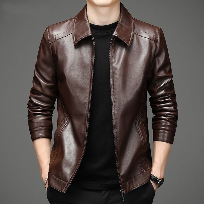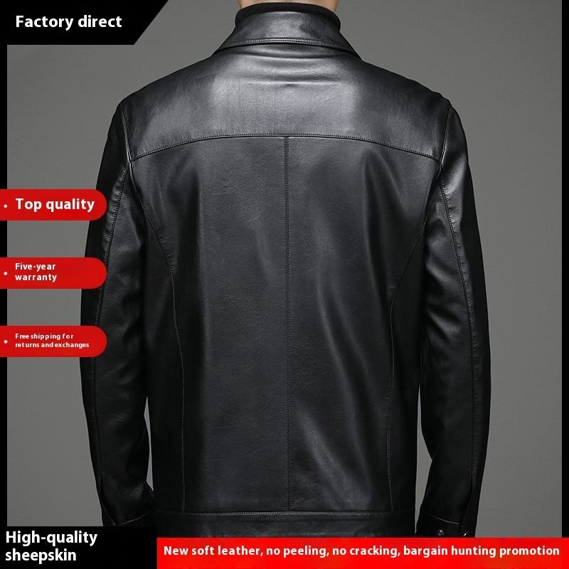 Thin Fleece-lined Soft Leather Jacket For Dad